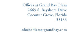 Grand Bay Plaza is one of South Florida’s most distinctive waterfront locations, steps away from the restaurants, shops and charm of Coconut Grove. The building is surrounded by The Ritz-Carlton and Wyndham Grand Bay hotels and the exclusive neighborhoods of Pinecrest, Coral Gables and Coconut Grove. This unique location offers its occupants the perfect place to live, work and play.